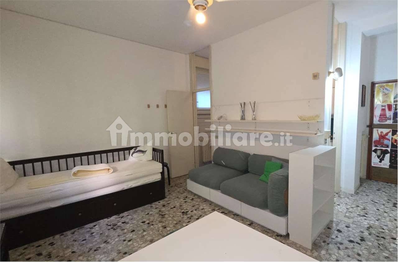 Appartamento molto tranquillo e silenzioso posto al primo piano con ascensore composto da: ingresso, soggiorno/camera letto, cucinotto separato e bagno con doccia finestrato. Riscaldamento centralizzato, piastra elettrica per cucinare, boiler elettrico per acqua calda. Libero subito.